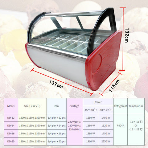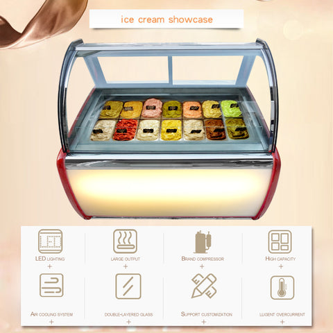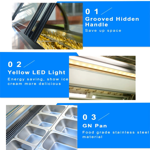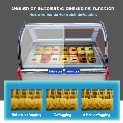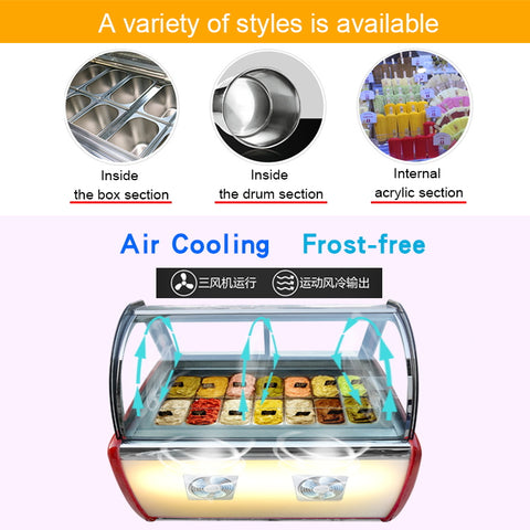 Anti-fog glass function Auto defrost,Air convection design,14 pans Gelato Display Freezer/Ice Cream Showcase Display cooler gelato Freezer