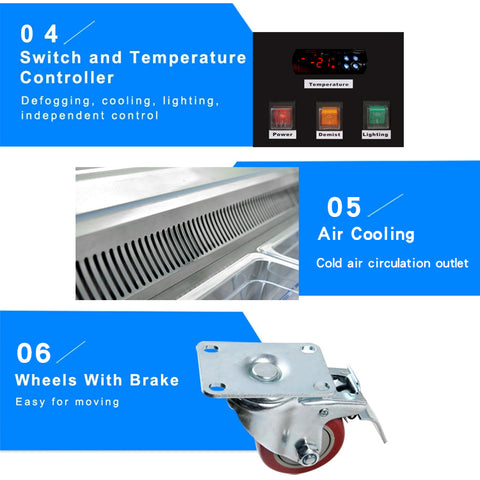 - 1360W, 110V 60HZ o 220V/60HZ, enchufe de EE. UU., 1 año de garantía para todas las piezas, diseño de convección de aire de refrigeración, descongelación automática, refrigeración por aire, ruedas giratorias