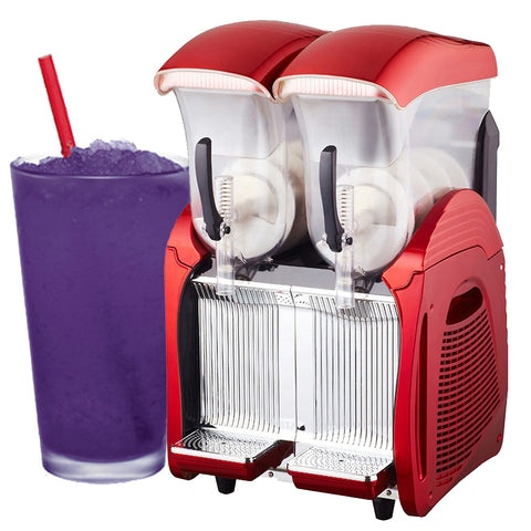 Machine de fabrication de Slushie, fabricant de boissons glacées Smoothie. 110 V, 60 Hz, Puissance : 900 W, prise US, double réservoir 2x12 L, compresseur de qualité, réfrigérant R404a déjà rempli avant l'emballage, temp. : -2C à -7C, taille de la machine : 20,47"x16,54"x32,28"(52x42x82cm), 1 unité/1 caisse en contreplaqué, couleur : rouge, matériau du boîtier : plastique, NW : 46KGS, conception à clapet à hayon, Smart touch bouton, il peut définir le modèle de nuit, le modèle de jour, le modèle frais et différentes températures, un matériau de qualité alimentaire