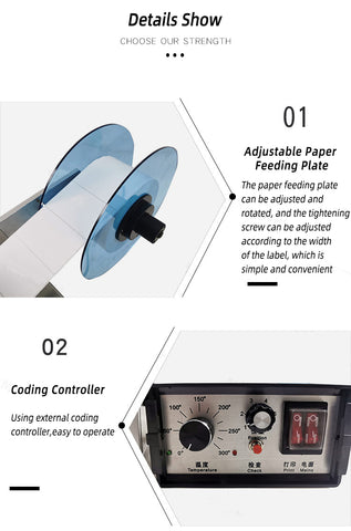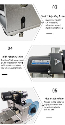 4. EXQUISITE STRUCTURE: There is paper receiving wheel inside the machine for collecting waste materials, which is easy to clean, automatic bottom paper receiving, saving time and effort; This semi-automatic labeling machine is small and does not take up too much space, which can be placed on the table or on the assembly line and is easy to operate.