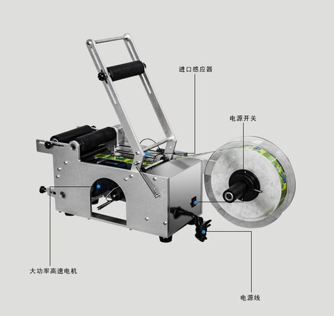 5. LABEL & BOTTLE REQUIREMENTS: Please note that this labeling machine is only applicable to a complete cylinder, the bottle body should not be uneven or curved, the cap should not protrude, and the label color should not be gold, silver or transparent; Label length: 1.18~7.87"(30~200mm), width: 0.79~5.51" (20~140mm), bottom diameter: 0.59~5.91"(15~150mm).